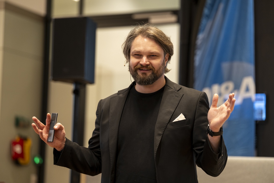 Na de inleiding nam Aragorn Meulendijks, toekomsthistoricus en expert in technologische trends, het woord. Hij schetste een beeld van de toekomst – 10 jaar vooruit – waarin een persoonlijke AI-agent een M&A-professional door de dag loodst. Daarna nam hij het publiek mee op een reis door de geschiedenis van de Homo sapiens, van de eerste beschavingen (32.000–12.000 jaar geleden) tot de uitvinding van de drukpers in 1440, die kennisverspreiding revolutioneerde.
