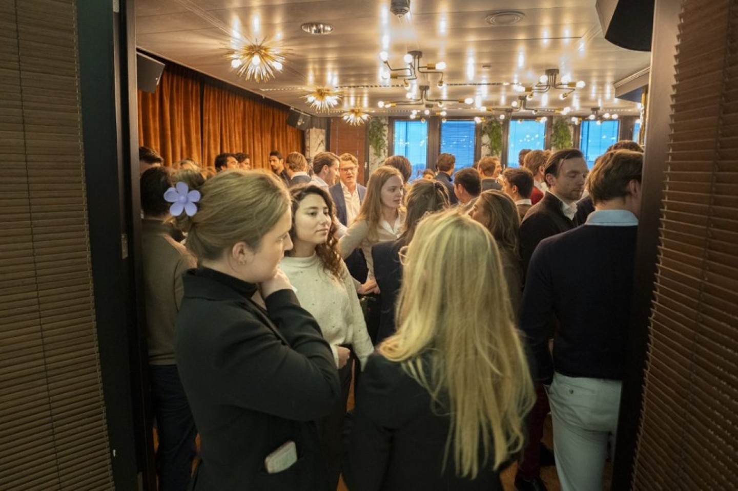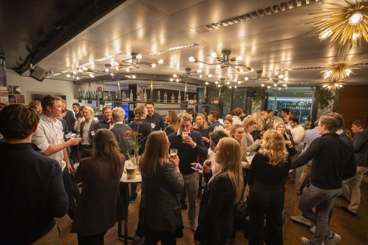 De leden van de Young Community sloten de avond ontspannen af met een gezellige borrel en levendige gesprekken in de sfeervolle, oude kroeg van Lexence.