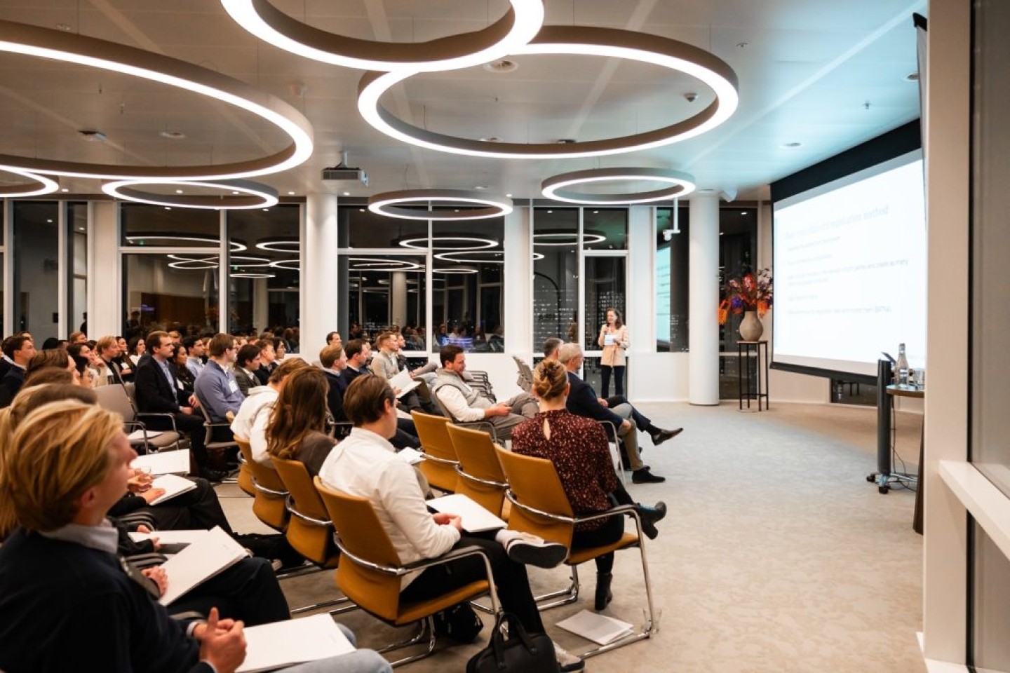 Namens de M&A Community heette Young Community Manager Laura de Munck de aanwezige jonge professionals welkom. Ze bedankte alle partners, in het bijzonder platinum partner Ansarada en gold partner NautaDutilh voor het hosten van dit evenement.