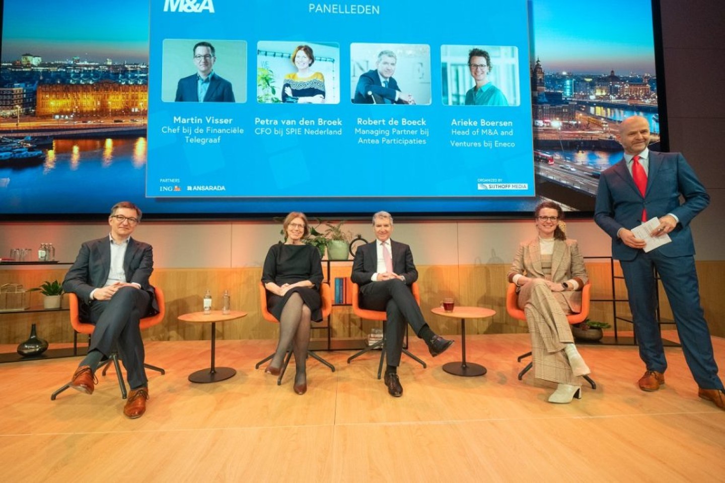 Het ondernemersklimaat onder het nieuwe kabinet Om deze zaken te bespreken was er een panel van experts samengesteld om de impact van de monsterzege van de PVV, de geopolitieke onrust en de strijd tussen Joe Biden en Donald Trump te bespreken. De (geo)politieke onrust van de afgelopen tijd heeft nogal wat impact gehad op de energiemarkt, dus Petra van den Broek (CFO bij SPIE) en Arieke Boersen (M&A Director en Director Ventures bij Eneco). Robert de Boeck schoof ook aan: de partner bij Antea Participaties en ongezouten commentator en columnist . Martin Visser (chef van De Financiële Telegraaf) bracht met zijn journalistieke blik het ‘outside in’-perspectief in de discussie.