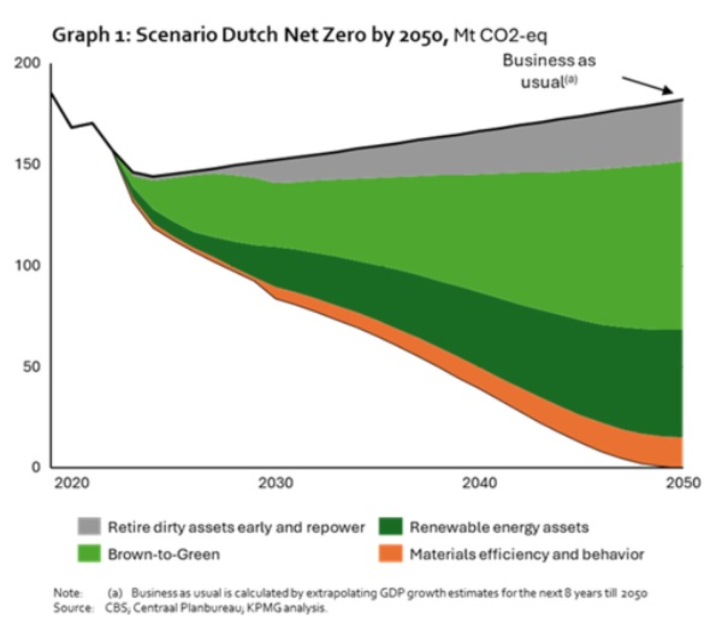Brown-to-green-investeringen Voor de transitie zijn aanzienlijke investeringen nodig om de huidige ‘bruine’ ondernemingen in de EU te transformeren tot de ‘groene’ ondernemingen van de toekomst. Neem als voorbeeld de Nederlandse economie: de vergroening van bestaande, conventionele (‘bruine’) ondernemingen levert een grotere bijdrage aan de energietransitie en klimaatdoelen dan de lopende investeringen in hernieuwbare energie en opslag – zie grafiek-1.