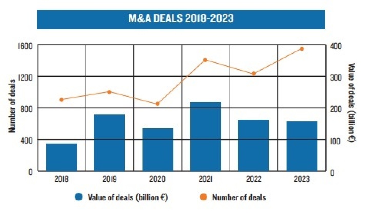 De gerealiseerde dealwaarde lag echter net als in 2022 lager dan in piekjaar 2021. De reden hiervoor is dat het aantal mega-deals afnam door economische en geopolitieke onzekerheid en een financieringsmarkt die grotendeels op slot zat.