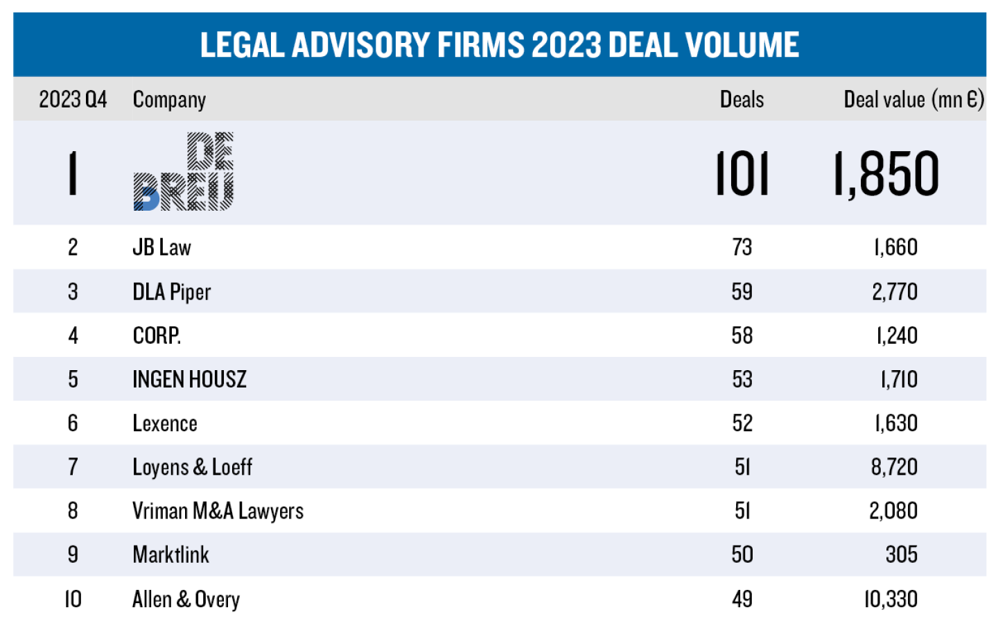 Dat blijkt uit de League Tables 2023 van Dealmaker.nl.