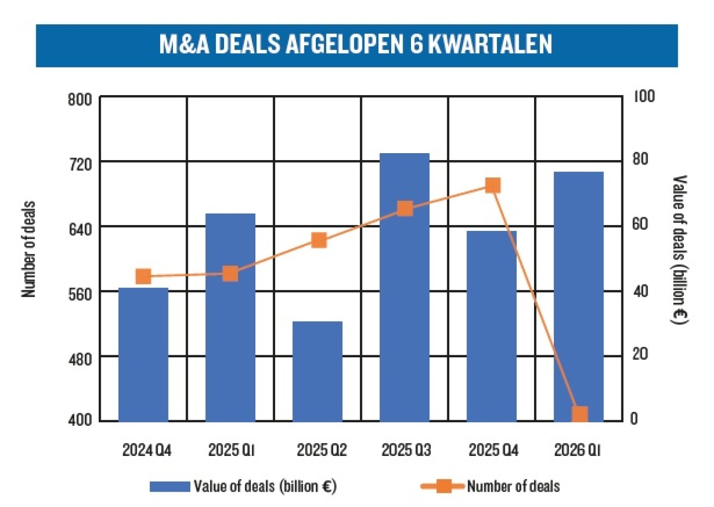 Het eerste kwartaal van 2026 kenmerkte zich door een dalend dealvolume, maar een stabiele dealwaarde – een teken van voorzichtig optimisme in een markt die zich heroriënteert.