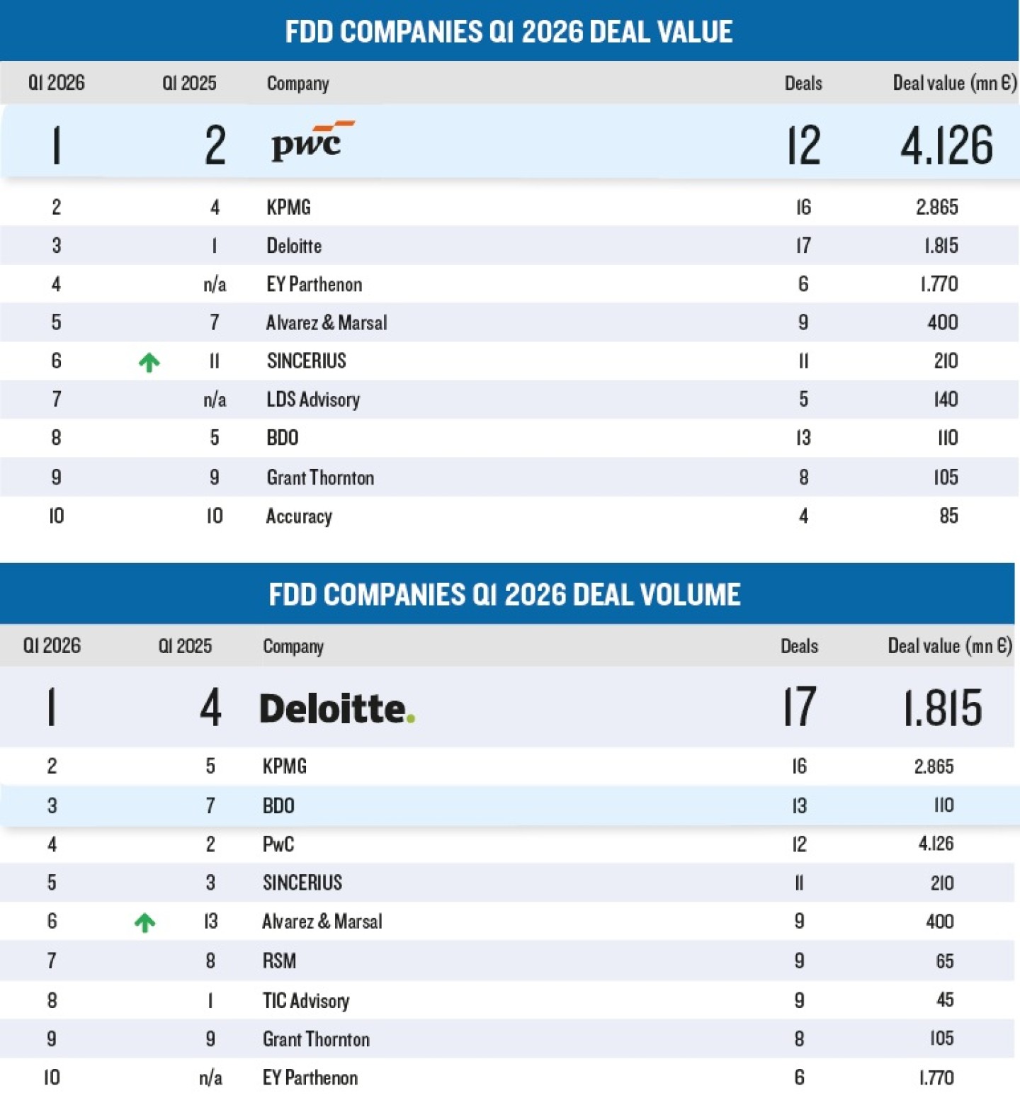 Dealwaarde: PwC aan kop PwC behaalde de eerste positie qua gerealiseerde dealwaarde in Q1.