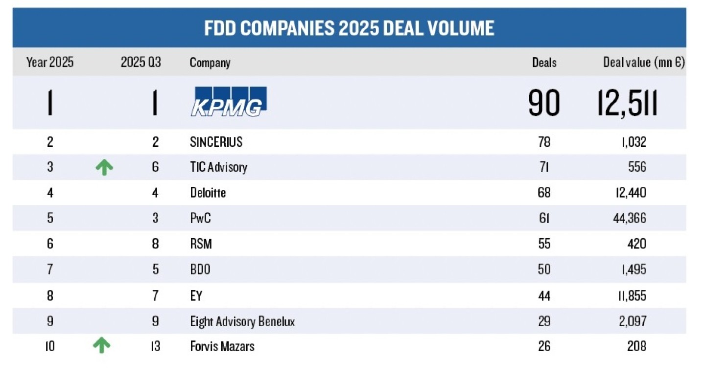 League Tables Q4 – Een overzicht van de leidende due diligence firms en dealmakers in 2025