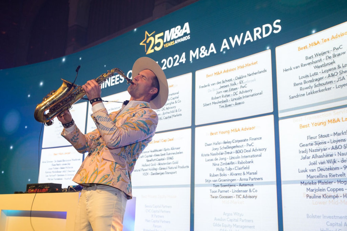 De Beurs van Berlage in Amsterdam was op donderdag 12 december 2024 het stralende decor voor de 25ste editie van de M&A Awards. Dit prestigieuze gala, de officiële afsluiting van het dealjaar 2024, bracht meer dan 1000 professionals uit de M&A-community samen om de crème de la crème van de sector te vieren. Gekleed in hun mooiste avondkleding genoten de gasten van een avond vol erkenning, culinaire hoogstandjes en entertainment. De jubileumeditie bewees wederom waarom dit evenement hét hoogtepunt is van het M&A-jaar.