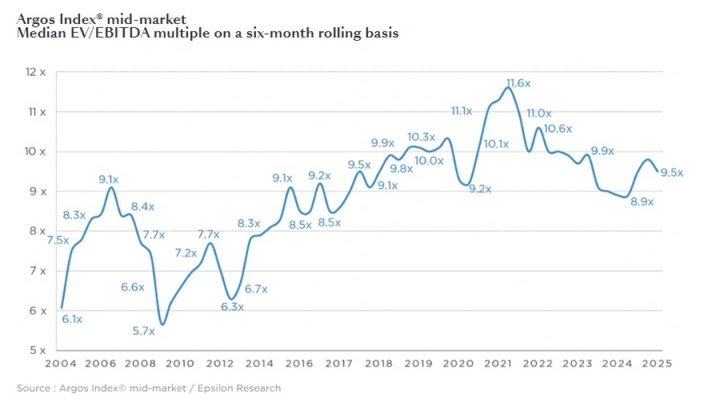 De Argos Index®, een belangrijke graadmeter voor de waardering van middelgrote ondernemingen in Europa, is in het eerste kwartaal van 2025 met drie procent gedaald naar 9,5x EBITDA.