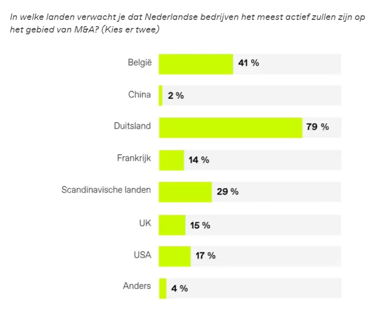 Landen die voorlopen bij acquisities in Nederland zijn Duitsland en de VS. Omgekeerd, kijken Nederlandse bedrijven meestal naar Duitsland en België.