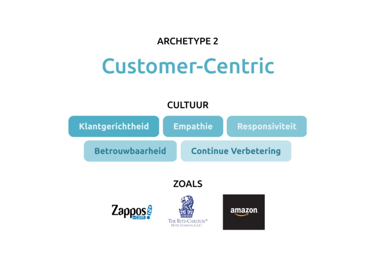 Voorbeelden: Zappos, Amazon, Ritz-Carlton.
