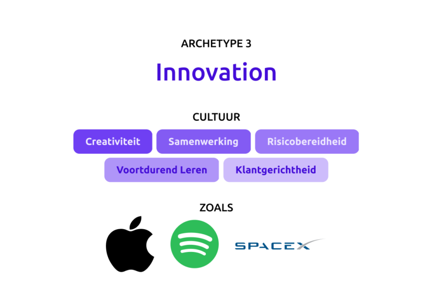 Voorbeelden: Apple, SpaceX, Spotify