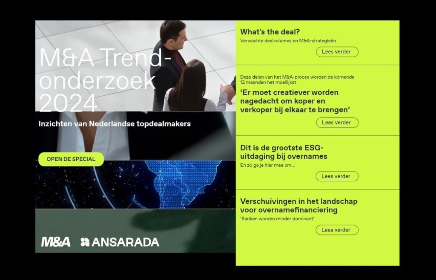 Dat blijkt uit het M&A Trendonderzoek 2024 van M&A en Ansarada.