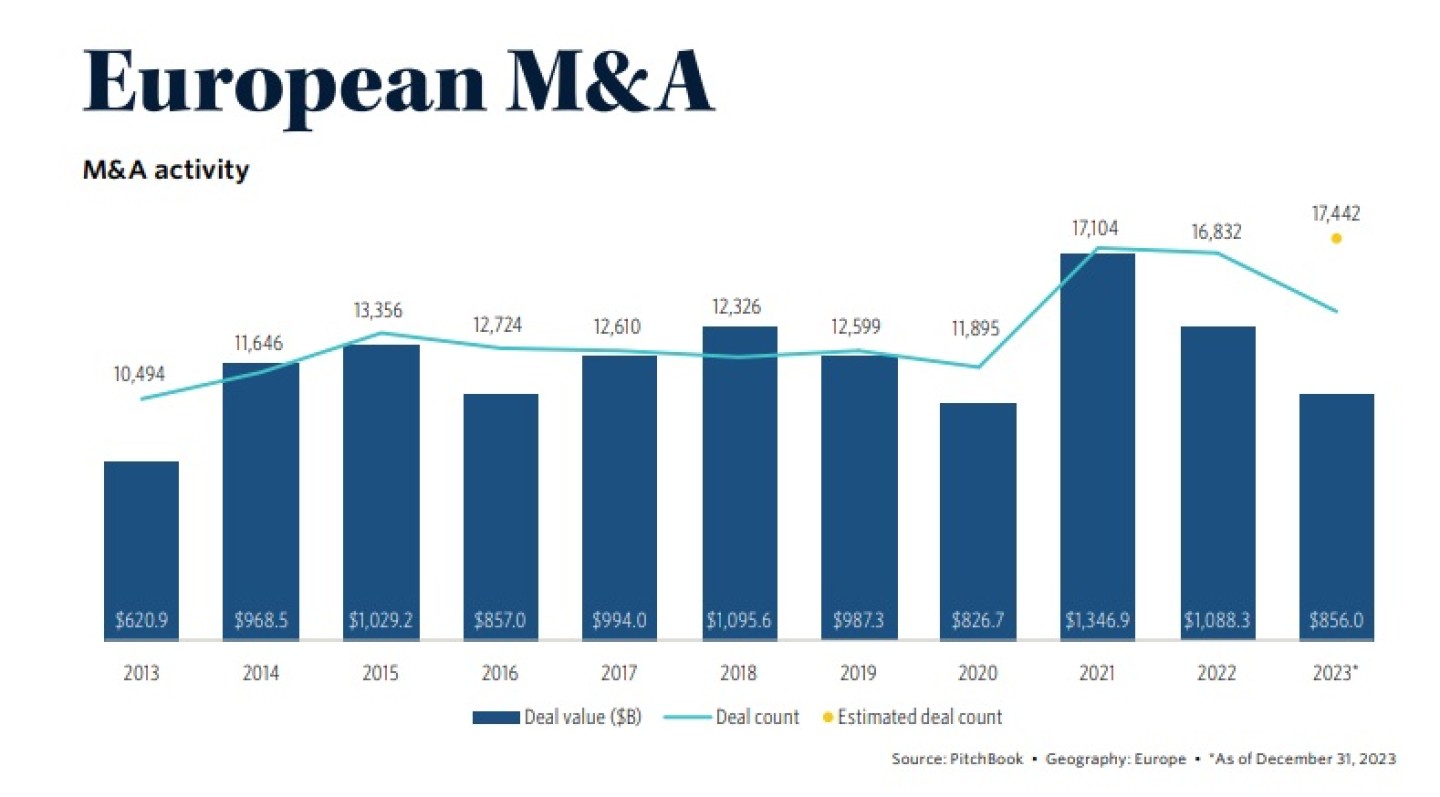 Vooruitzichten 2024: meer deals, minder IPO's Kijkend naar 2024, verwacht Pitchbook dat de belangstelling voor fusies en overnames weer zal terugkeren en dat dit zal leiden tot groei, zeker nu de laatste monetaire verkrappingscyclus ten einde loopt en de markten in 2024 renteverlagingen verwachten. Dit zal fusies en overnames aanwakkeren en economieën over het hele continent stimuleren.