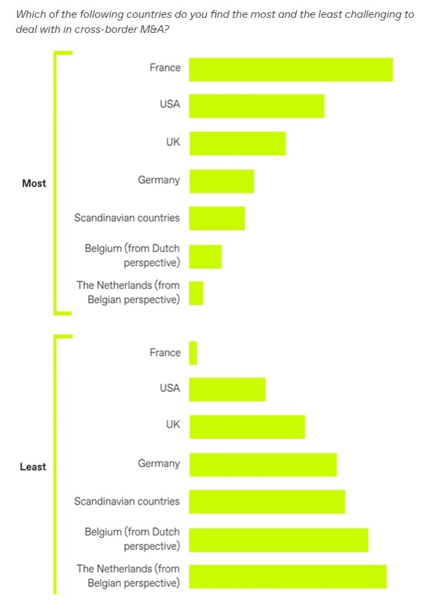 • Frankrijk wordt als het meest uitdagende land wordt beschouwd voor cross-border deals.