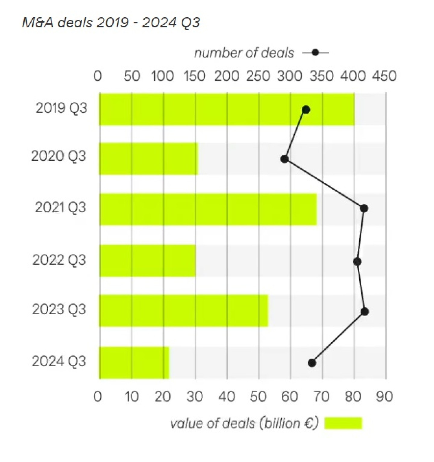En zeker de renteverlagingen van de FED in de periode van september 2023 tot en met september 2024 zijn in de ogen van veel dealmakers lager uitgevallen dan werd gehoopt, waardoor die lagere rente ook maar een beperkt opwaarts effect heeft gehad.