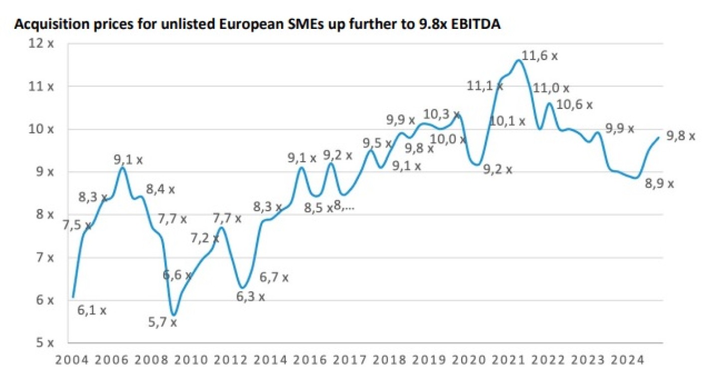 Vooruitzichten voor 2025 De verdere verbetering van de financieringsvoorwaarden en een stabiliserend macro-economisch klimaat suggereren dat MKB-waarderingen verder kunnen stijgen.