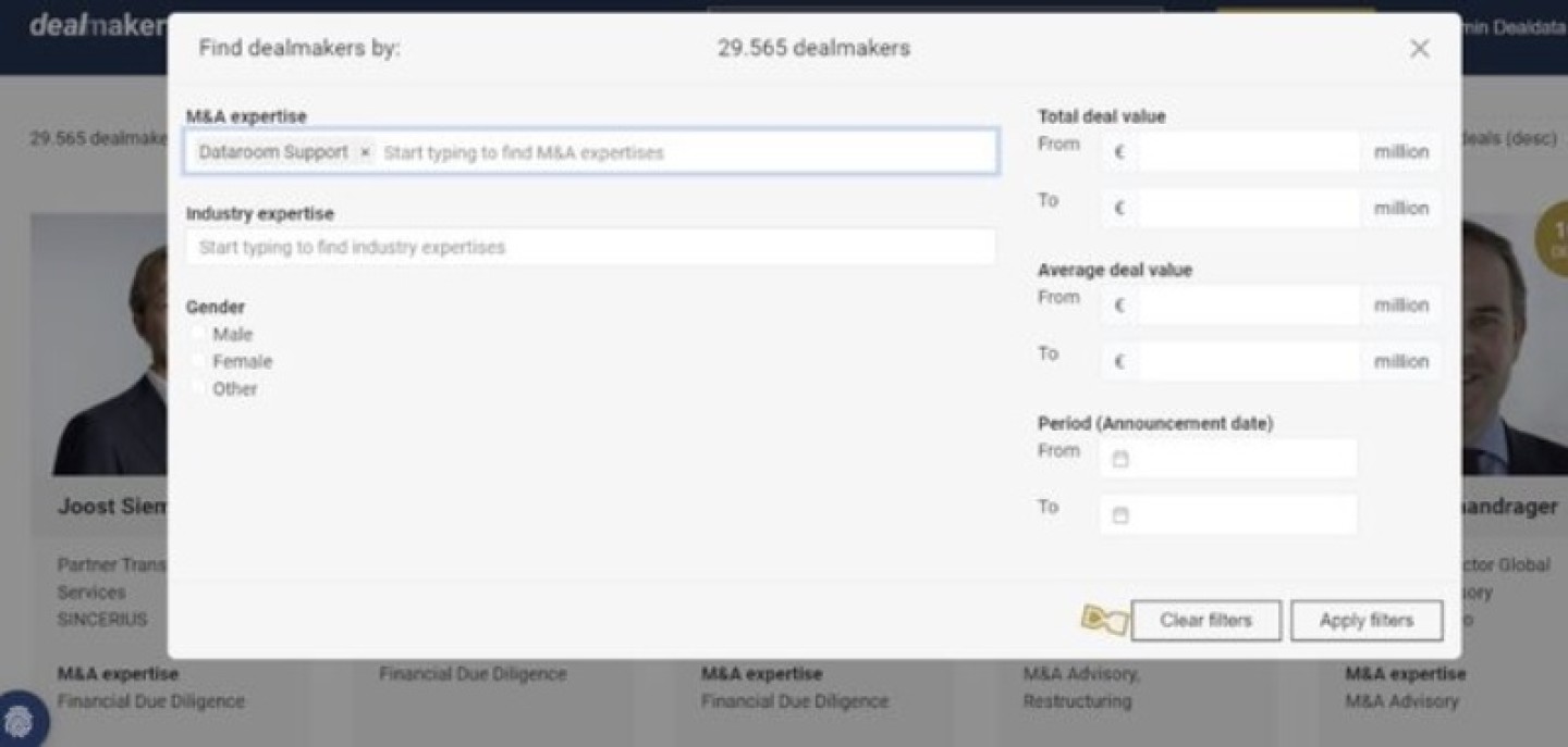 “Het platform was toe aan vernieuwing”, zegt Jurrien Morsch, M&A Community Manager. “Op het nieuwe, ‘future-proof’ platform zijn de mogelijkheden om diepgaandere analyses te doen op expertises en industrie-knowhow, onder zowel dealmakers als bedrijven, flink uitgebreid.”