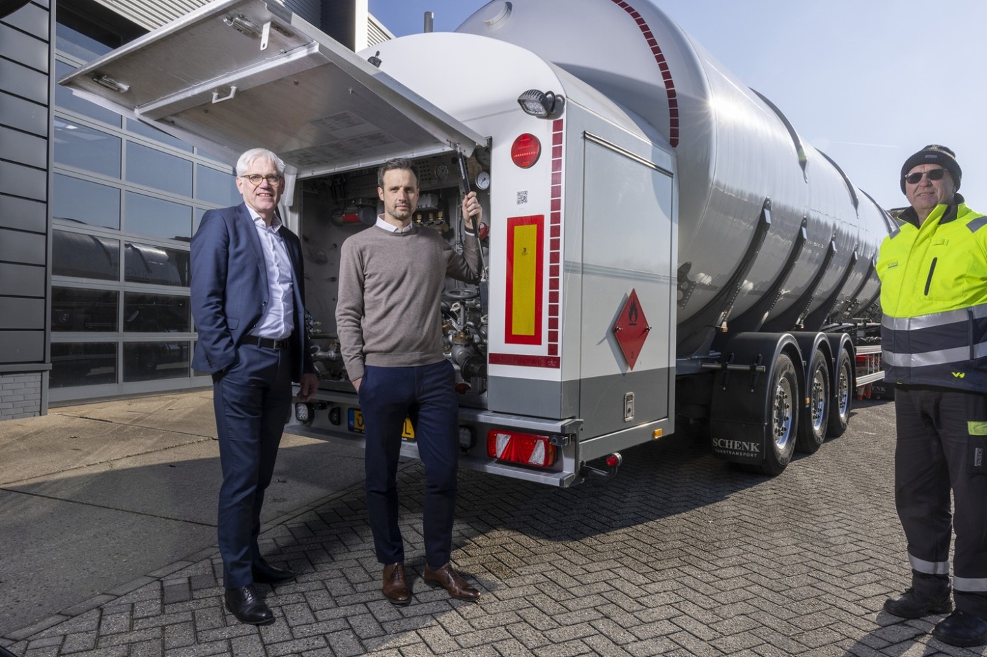 Naast duurzaamheid blijft veiligheid een fundamenteel onderdeel van de bedrijfsvoering. Claessen benadrukt dat chauffeurs van Schenk – die verplicht uitgebreide trainingen volgen en specifieke certificaten moeten behalen – niet alleen rijden, maar ook als operators werken. “Ze bedienen zowel de installaties bij het laadpunt als bij het afleverpunt. Daarom hebben we een strikt protocol om gevaarlijke situaties te voorkomen.”