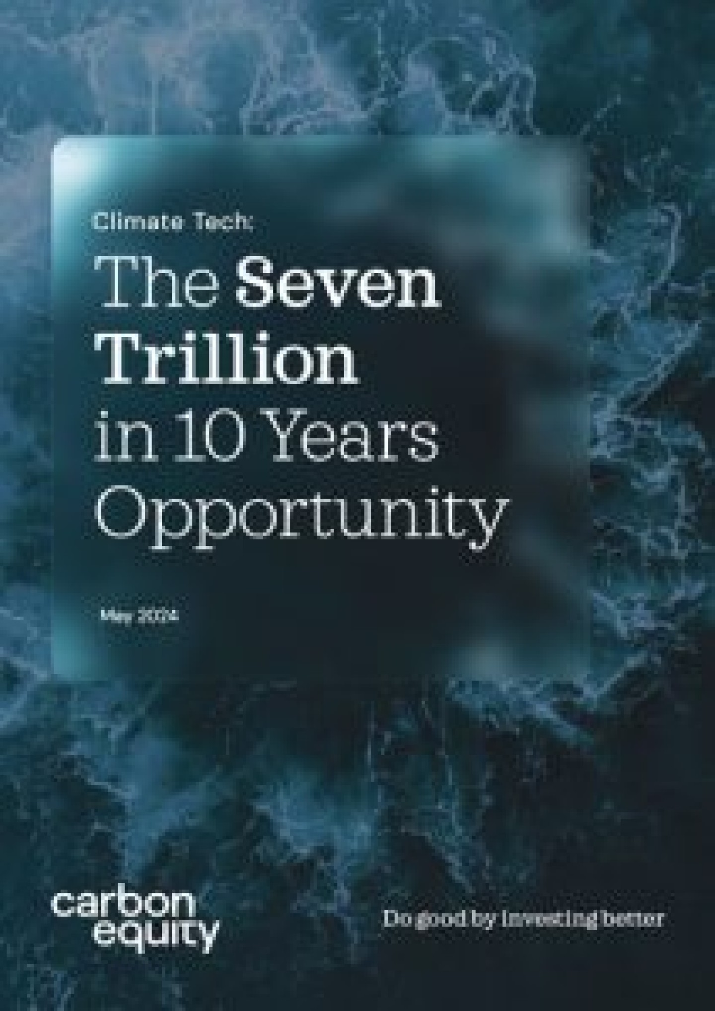 De kans van zeven biljoen in tien jaar Onlangs bracht Carbon Equity een whitepaper uit, genaamd 'The Seven Trillion in 10 Years Opportunity’. Voor co-auteur Liza Rubinstein Malamud is duidelijk dat het met de juiste aanpak mogelijk is om een aantrekkelijk rendement te behalen met investeringen in klimaattechnologie. Dit zijn haar vijf favoriete inzichten uit het rapport: 1). De jaarlijkse inkomsten uit klimaattechnologieën zullen naar verwachting groeien van vijf biljoen euro in 2020 naar twaalf biljoen euro in 2030, een jaarlijks samengesteld groeipercentage van tien procent. 2) Klimaattechnologie, zoals hernieuwbare energie en elektrische voertuigen, bevindt zich al op of staat op het punt prijspariteit te bereiken met de bestaande technologie. Ongeveer tachtig procent van de klimaattechnologieën die nodig zijn voor een netto nul uitstoot heeft een duidelijke route naar kostenpariteit. 3) Climate Tech VC trekt momenteel vijftig miljard dollar aan investeringen per jaar aan, waardoor in 2023 zestien procent van al het durfkapitaal en groeikapitaal in klimaattechnologie werd geïnvesteerd, wat meer dan verdrievoudigd is in tien jaar tijd. 4) Klimaattechnologie-VC is veel veerkrachtiger geweest dan algemene VC: een daling van twaalf procent versus meer dan vijftig procent in de afgelopen twee jaar. 5) Steeds meer reguliere PE-fondsbeheerders stappen in klimaattechnologie omdat ze de boot niet willen missen.