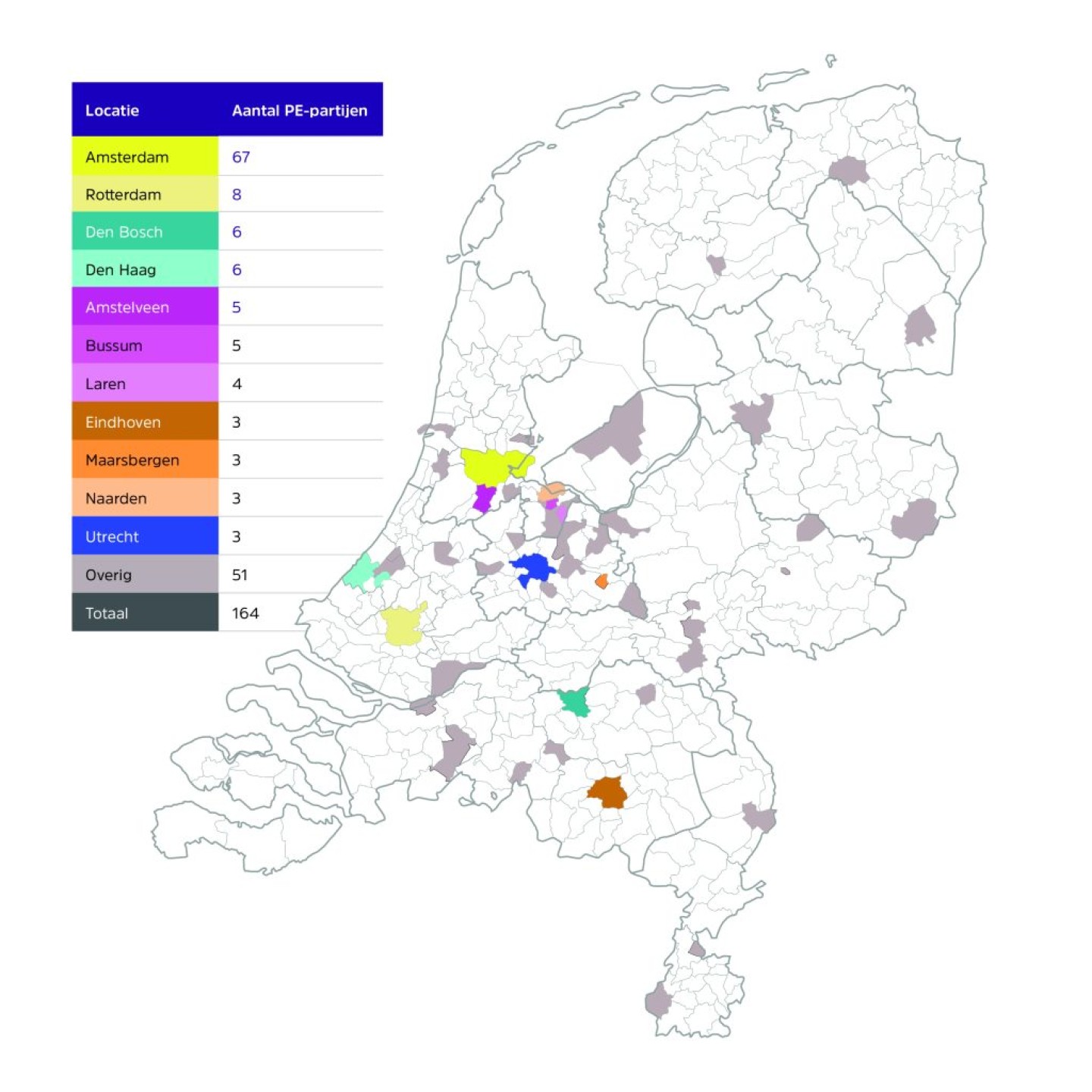 Aantal vestigingslocaties private equity in Nederland