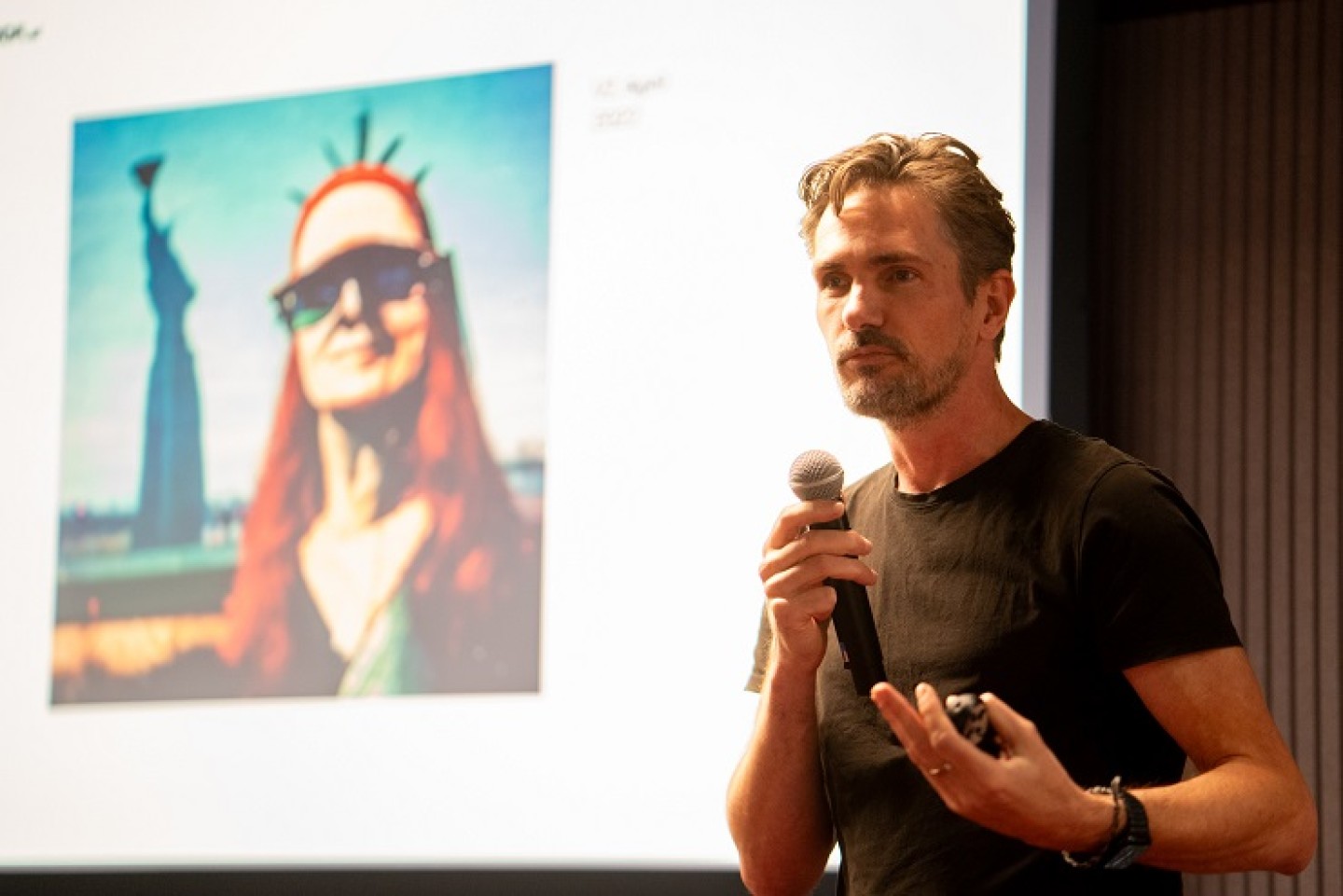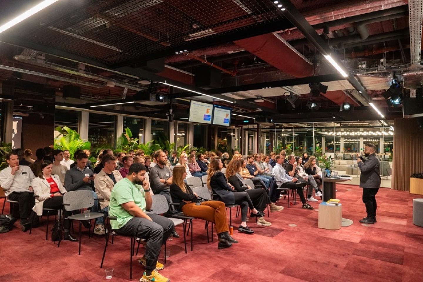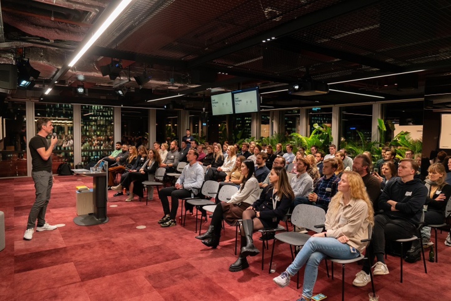 De community verwelkomde Diederik Veelo op het podium. Diederik is Hoofd Innovatie bij creatief productiebureau Ambassadors en oprichter van creatief productieplatform Cube en Vocoda.ai, een stemsynthesestudio die met behulp van AI realistische stemmen produceert voor reclamedoeleinden. Klanten zijn onder meer Apple TV, HBO, Adidas en G-Star.